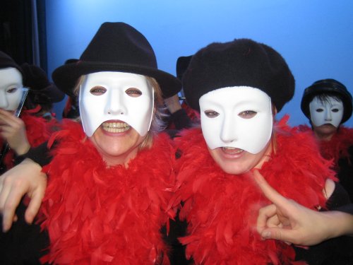 OK! Dasch e Detail! Uf jede Fall hänn mir im Foyer so witergmacht wie mir an dr Premiere agfange gha hänn! Es het rächt vyyl Bier und Waggis gääh! Es isch wieder mächtig gflöörtet worde. Jetz sin schiints au d Vorträblerinne bereits am Claudio am ummebaggere gsi und hänn welle wisse, wievyyl är däät koschte pro Stund!! :o) Het er ächt deswäge nohär nur no Bleeterliwasser drungge?! Mir frooge ihn an dr Fas-nacht odr am Bummel, wo är gärn wurd kho! D Claudia het eimool mehr, mit de Beb-bi-Männer gflirtet und au suschtigi Grüchtli sin do an mi drait worde so richtig mit dobbel-Froogezeiche…“Duu weisch doo sicher meeehr driber!??!“ hets gheisse! Mein Name ist Hase und ich weiss von nix, han y zer Antwort gäh!! (Y kha jo nit sa-ge: „ Goht Di nytt aa!!!“). Und so sinn mir dertbliibe, bis sLiecht agange isch!! Sehr gfreut het mi au, dass no e paar Jungi ins Foyer sin kho luege (oder sott me do ächt nit stolz druff sii, wenn sie scho vor em Stamm kemme kho su… eh pläuderle?!) Hmm! Y finds guet, denn das isch Integratioon!!!