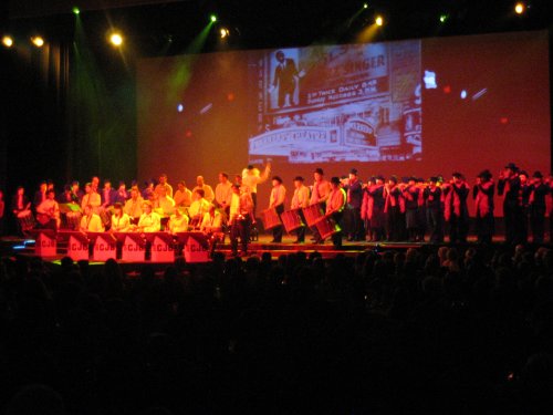D Spale het geschter ganz logger afo pfyffe-ruesse-trompeete! Alles isch guet gsi, mir hänn ys alli pudelwohl uff dr Bihni gfyylt (will mir wisse, dass dr Hedi uns immer scheen azeigt, wenn mir unsere Yysatz hänn). Pletzligg ischs passiert: Y ha de Jazzer zuegloost wie scheen sie wieder emoll improvisiert hänn und uff s Mool han y gmerggt, dass dr Hedi numme no mit sym Stäggli griehrt het, ganz heggtisch, ass mir selle afo pfyffe und drummle. Also dr Doon isch scheen vo Hinde nach Vorne kho und dr Megge het dr Tambouredail au grettet und so hänn mir dr Vortrag ganz sicher und ruhig iber dRundi brocht. Sovyyl zu:“do hilft numme stur zelle zelle zelle uuuuuund zaige…!“(Villicht ischs besser, nit ganz so stur z’zelle drfir mehr mit de Jazzer mit z’schwelge :o).