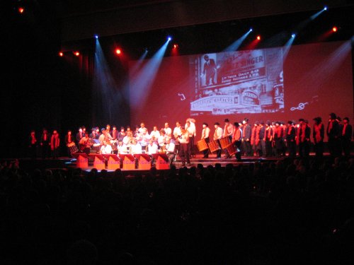 Dr Uffdritt isch guet gsi, kaine het si Ysatz verpasst odr drnääbeghaue! Fir das uns aber iitrichteret worden isch, dass hit s Färnseh do sig und mir nit solle verschregge, wenn ein mit dr Kamera in d Auge lyychte sott, han y rächt wenig Kameras gseh (ah jo, mir hänn jo am Donnschtig scho e Kameramaa uff dr Bihni gha, hihi)