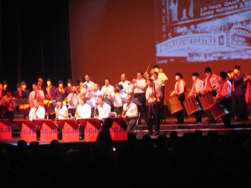 “Jazztöne swingen uns aus der Pause an den Tisch zurück. UND WAS FÜR TÖNE! d’Spale Clique goes Jazz – zusammen mit der Jazz-Hochschule intoniert sie Gruntz-Sound vom Feinsten: s’Ohremyggeli. Der Meister selber sitzt im Publikum. Ist begeistert…. ” [minu, baz 12.2.07]