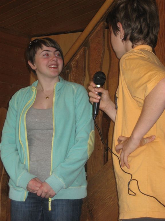 Zem Schluss vom Daag Eins muess ich no unseri Nachtwanderig erwääne. Mir häns uns grad welle gmietligg mache und dr Film „Forrest Gump” luege, do hets plötzligg ghaisse, dass unseri Popcorn „entfiert” worde sin. Sofort hän mir warmi Kleider ahgleggt und sin durch d Dunkelheit in Wald verschwunde. Nach e baar Schreck-Sekunde für die einte und Lach-Ahfäll für die andere (mir könne jo au nüd drfür das d Fraue so schreckhaft sin :-)) sin mir denn ändligg ane Fyrstell ko. Dört hän uns zwei gschpängschtigi Figure mit Nosferatu-Larve empfange. Mir sin denn jede einzel zem Füürli gange und hätte drei schweeeeeri Froge sotte beantworte. Will me die eifach nid het könne beantworte, het me miesse Häxebluet dringge (Ihr wänd gar nid wüsse was din gsi isch!!).