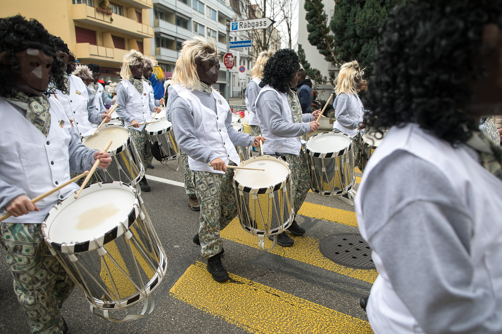 Dr Cortège bi Oobesunne uff dr Mittlere Brugg gniesse